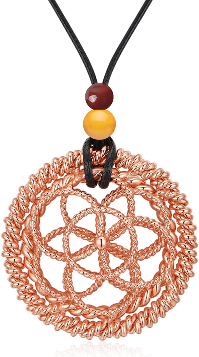 Lotus of Life Tensor Ring Necklace β Sacred & Lost Cubit Frequencies for Spiritual BalanceExperience the beauty and harmony of ancient sacred geometry combined with the powerful resonance of the Sacred Cubit (144MHz) and Lost Cubit (177MHz). This handcrafted pendant features the Lotus of Life design, made from pure copper with a gold plating finish, adorned with natural Red Agate and Yellow Jade beads for a captivating look and deeper spiritual alignment.Frequency Healing: Sacred Cubit (144MHz) for abundance and stability, combined with Lost Cubit (177MHz) for mental clarity and emotional balance β ideal for meditation, yoga, and spiritual rituals.Material Excellence: Pure copper with gold plating, complemented by Red Agate (8mm) and Yellow Jade (10mm) beads for durability and spiritual resonance.Adjustable Design: Comes with a 70cm (1.5mm) waxed cord, making it ideal for daily wear, special rituals, or as a cherished gift for friends and loved ones.Energy Harmony: An elegant piece inspired by sacred geometry to foster a balanced, peaceful state of mind throughout the day.Perfect Gift for All: A meaningful accessory for yoga lovers, healers, spiritual seekers, and anyone wishing to invite more tranquility and focus into their life. Not intended as medical equipment.Carry this beautiful, handcrafted pendant with you every day as a symbol of spiritual alignment, emotional clarity, and inner balance. Its timeless design makes it ideal for meditation spaces, sacred rituals, or simply as a reminder to stay connected to your highest self throughout the day!